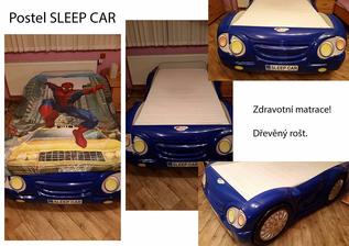 Prodám dětskou postel SLEEP CAR za 4500,- Součástí je dřevěný rošt s úložným prostorem a kvalitní zdravotní matrace, která má odnímatelný, pratelný potah ( PC matrace byla 6000,-) ROZMĚRY postele: délka - 200 cm šířka - 120 cm výška - 55 cm. Nosnost 100kg. Jedinou vadou je potrhaná nálepka předního světla a malá prasklina na boku postele. PC postele 8000,-