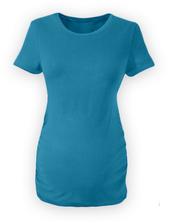 Těhotenské tričko, krátký rukáv, kulatý výstřih, řasení v bocích