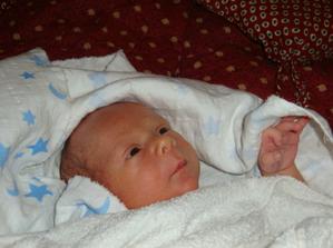 Tomášek se narodil 12.10.2009 ve 13.05 císařským řezem, 2920 g a 48 cm.
