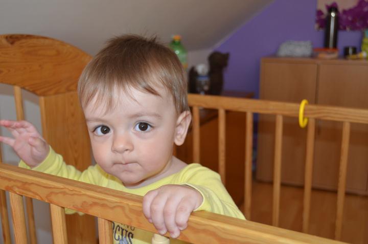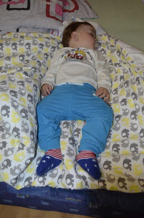 Po náročném dni spinká jako medvidek. Lezou nám vrchní zoubky, ale je to bojovník (nebrečí, nemá teplotky a ani průjem) šikulka můj 🙂. 🙂