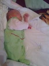 1.6.(to mám 5 týdnů) kontrola u paní doktorky, všechno ok už měřím 49cm a vážím 3,30kg, jupííí. Teď jsme s maminkou trošku nachlazené tak se mazlíme v postýlce a léčime se 🙂