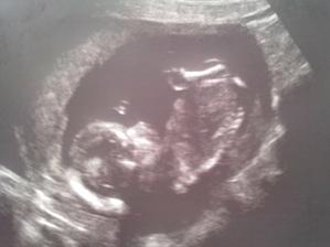 24.11.11 spadla jsem na namrzlych schodech, takze jsme jeli cvicne pro jistotu do porodky, po hodinovem nataceni monitoru, kde Emisce lital tep 120-190/min je vsechno v poradku, jiz otevreno na spicku prstu, takze doporuceno si radeji zabalit tasku driv... Na tomto utz byla podle biometrie o 5 dnu vetsi, tak tezko rict, kdo meri blbe;)