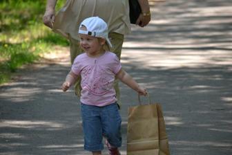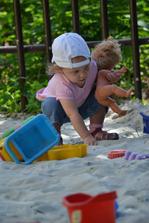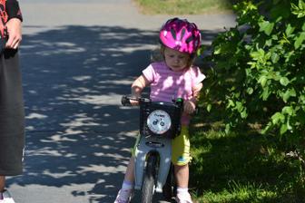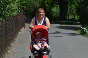 No a jen tak maminka kouká po kočárku - měla vysněný nádherný černý s bílíma puntíkama a máma míní a dítě mění 😀 - jela jsem s ní do hračkárny a domů jsme vezly růžový kočárek s proužkama .... asi jí padnul do oka - paní prodavačka se snažila, předváděla i jiné kočárky, ale smůůůůůla - Karličce prostě padnul tuten do očka i do ručky a už je doma a to mě ještě pumpnula o panenku v plínce a domů si v kočárku dovezla i kamínky ...