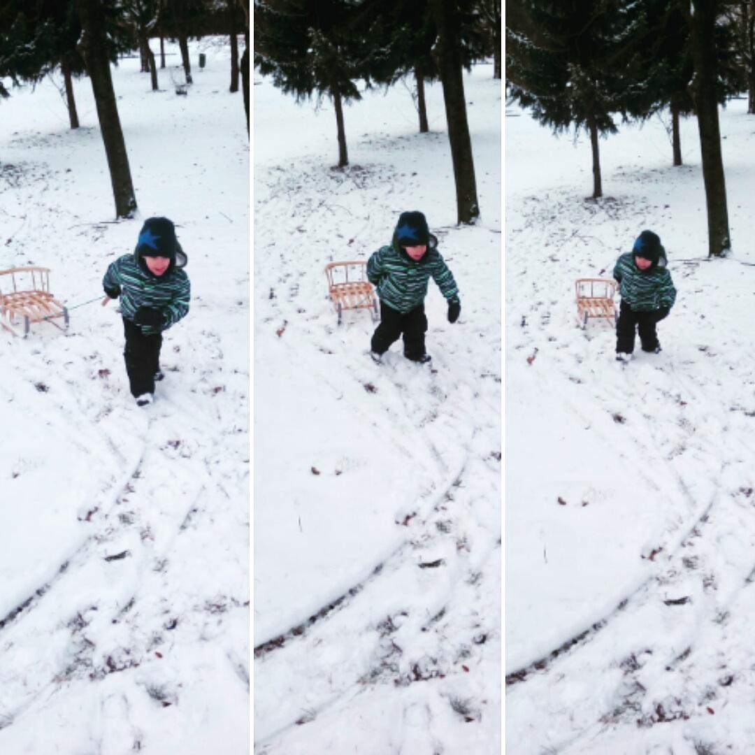 Na kopci jsem se citila trochu divne...vsichni rodice jezdili se svymi detmi a ty jim pak sanky/boby vytahli nahoru...jen nas Theos si to sam sjel, nekolikrat vrazil do stromu a pak si to i sam vytahl...a beda jak mu na jeho stroj nekdo sahnul...ale bylo fajn pozorovat ty upocene tvare a slyset: podivej se na chlapecka, jak je sikovny a tahne si to sam 😀