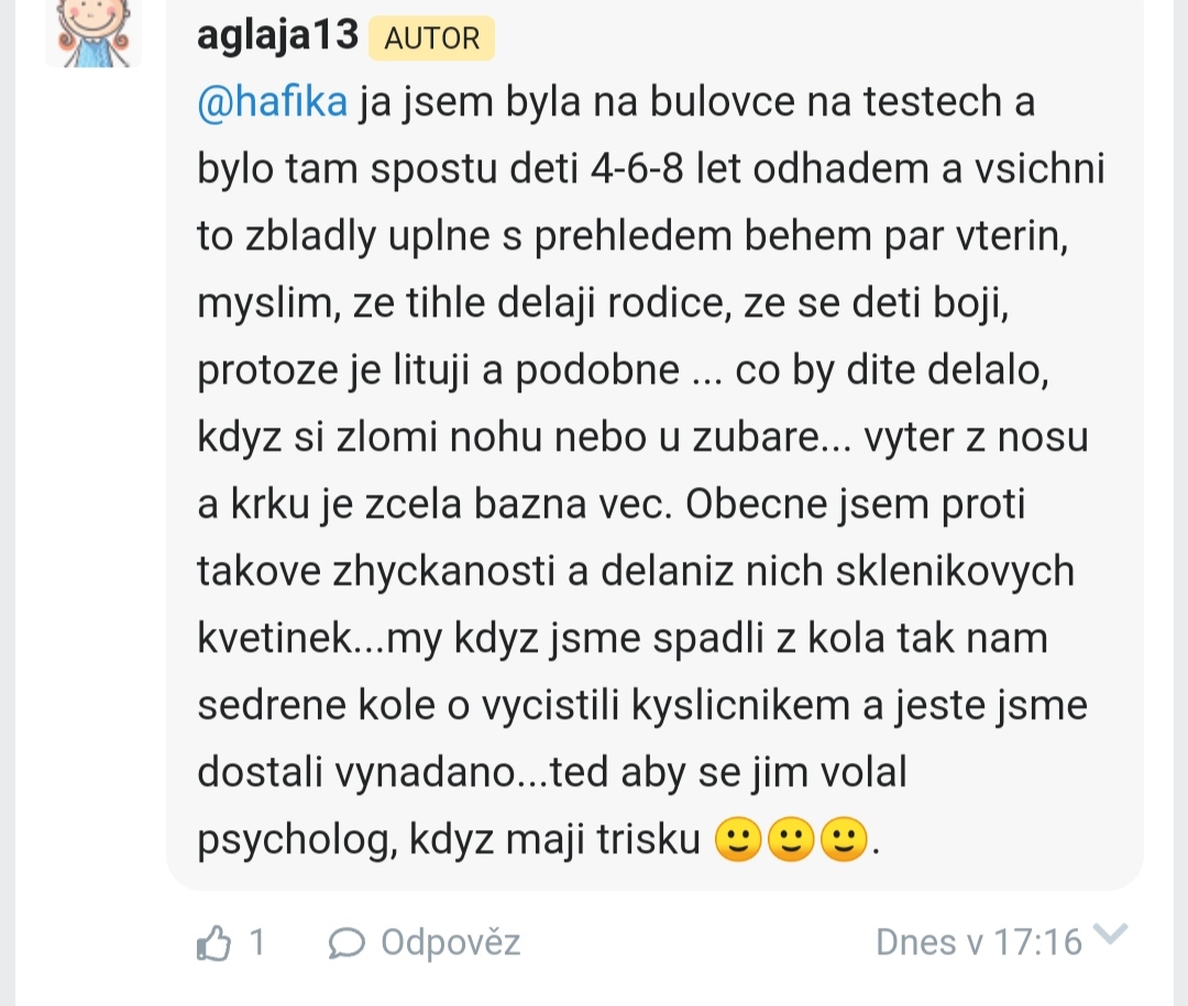 @blessedmary no a k tomu testu. Pokud tě to bolelo tak, že jsi až plakala, tak to bude možná tím, že ti vzali i kousek mozku a jde to bohužel vidět. Neznám nikoho kdo by brečel, a už vůbec ne chlapa 😁jo aha, jestli to náhodou nebude tím, že jim to udělali blbě a vám jediným dobre🙈