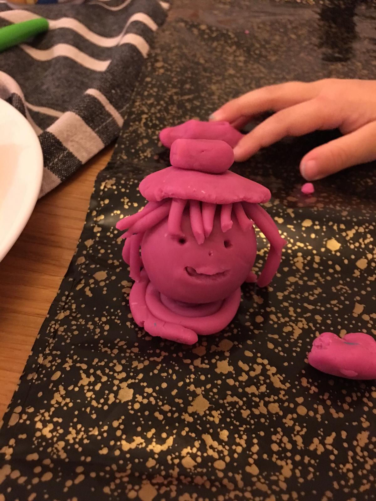 - Nešikovný tvar kelímku s modelínou – s vyndáváním modelíny z kelímku jsme tedy opravdu zápasili. Modelínu jsme ven museli dlabat nožíkem. Vyklepnutí ven nefungovalo. Modelína byla ke dnu kelímku pevně přilepená a nic s ní nepohnulo. Možná by stálo za to zapracovat na kelímku – daleko šikovnější by byl širší a nižší kelímek, který by byl prstům daleko přístupnější.