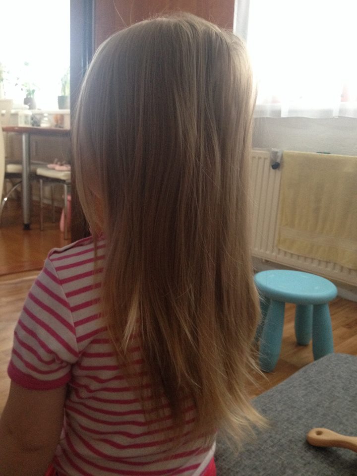 @breebeeerka pravda, k holčičkám patří dlouhé vlásky 😉 Jsem jí to před rokem nechala střihnout na mikádko, protože jak to neměla stříhaný, tak je měla v pramínkách a všelijak dlouhé. Teď je má moc hezký, ale podrůstají ji a trčí