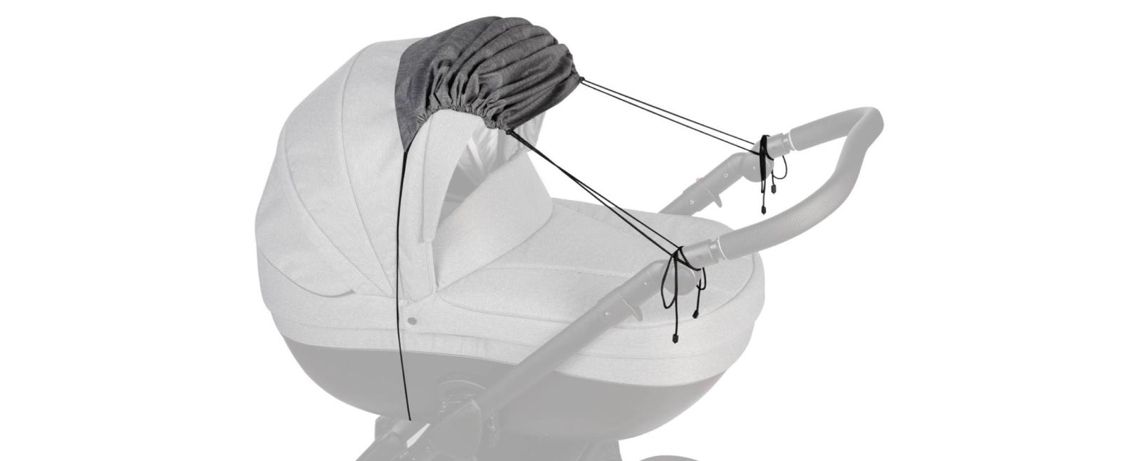 Stínítko pasuje na všechny hluboké i sportovní kočárky. Je baleno do praktické látkové taštičky na zip, která je součástí balení.