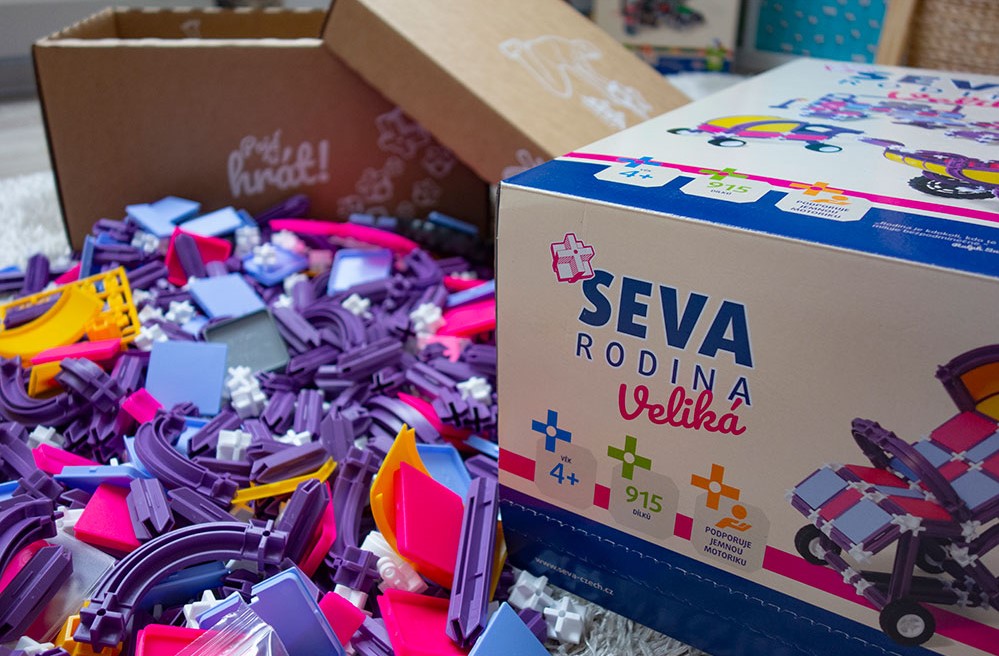 Stavebnice SEVA je jediná stavebnice, kterou si pamatuji z dětství, a to proto, že mě fakt bavila. A takhle moderní verze Sevy, která je vylepšená o různé tvary a barvy, baví i mé 3 děti. Materiál z kterého je vyrobena, je recyklovaný plast, který je pevnější než dřív. Děti si s ní hodně vyhrají, takže opravdu doporučuji koupit. Nejvíc nás na ní baví to, že z ní jde postavit skoro všechno. Chceš kamion, žirafu nebo postýlku pro panenky? A skoro nezničitelný kartónový box s víkem na uložení stavebnice je super vychytávka.