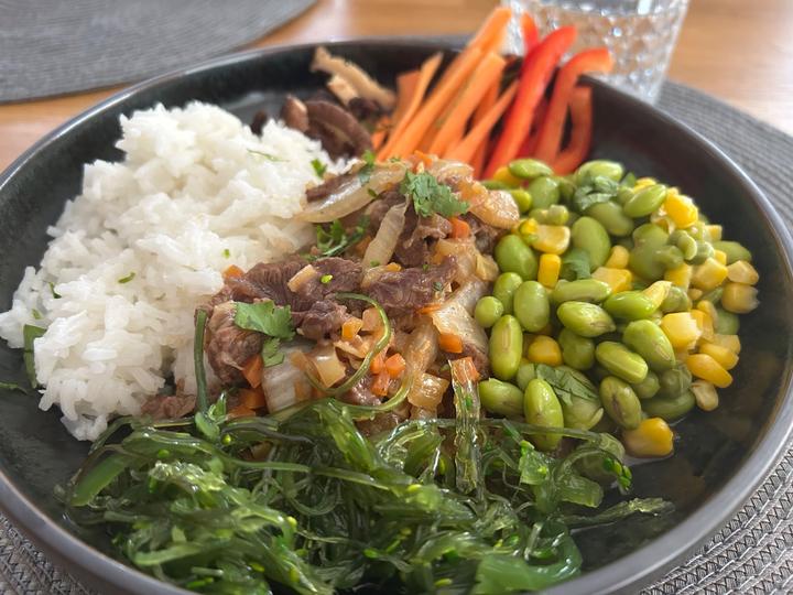 - o víkendu jsem připravila hovězí jako čínu a část zvlášť podusila (k rýži a bramborovým plackám)