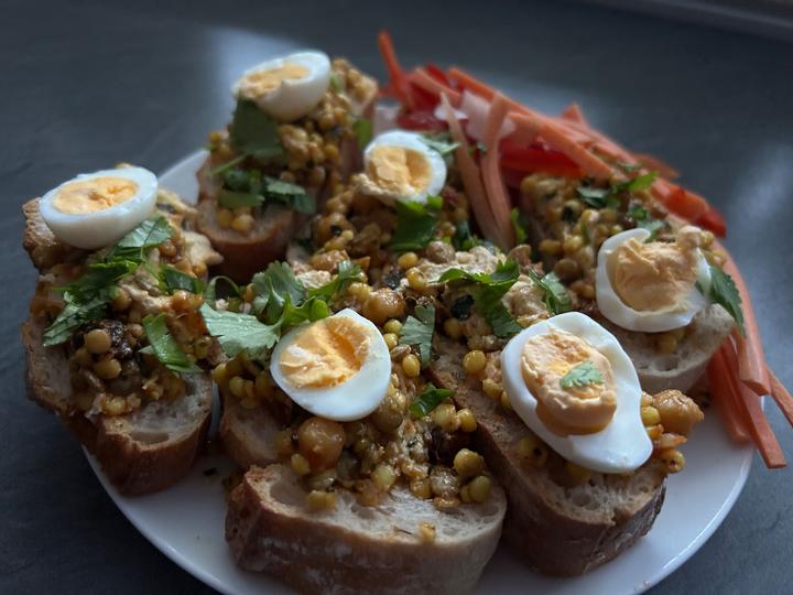 - kanapky s bulgurem a koriandrem s křepelčími vejci a zeleninou