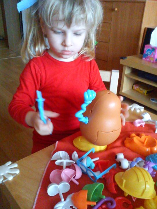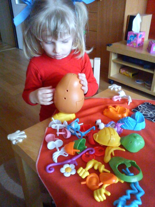 Karamelka sedí a přebírá korálky podle barev do mističek a zpívá: jedno zlnko popela,jedno zlnko hlášku, to aby si věděla že máš hejno blášku😀 chce se mi smát jak je roztomilá popeluška moje🙂