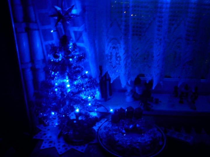 táák a už nám stojí náš stromeček..... a Karamelka se na něj líbezně dívá a říkáááá " jsme to ale holky šikovné, to se bude ježíškovi líbit 😀"
