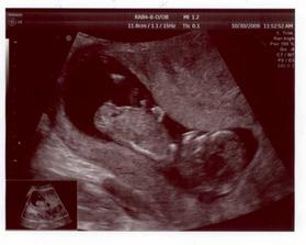 2.10. 2008 - Kontrola u doktora, jsme 8+5 tt, miminko má 2,10 cm a když bude vzorné a narodí se na termín, tak si ho maminka dá k narozeninám - termín porodu 9.5.2009