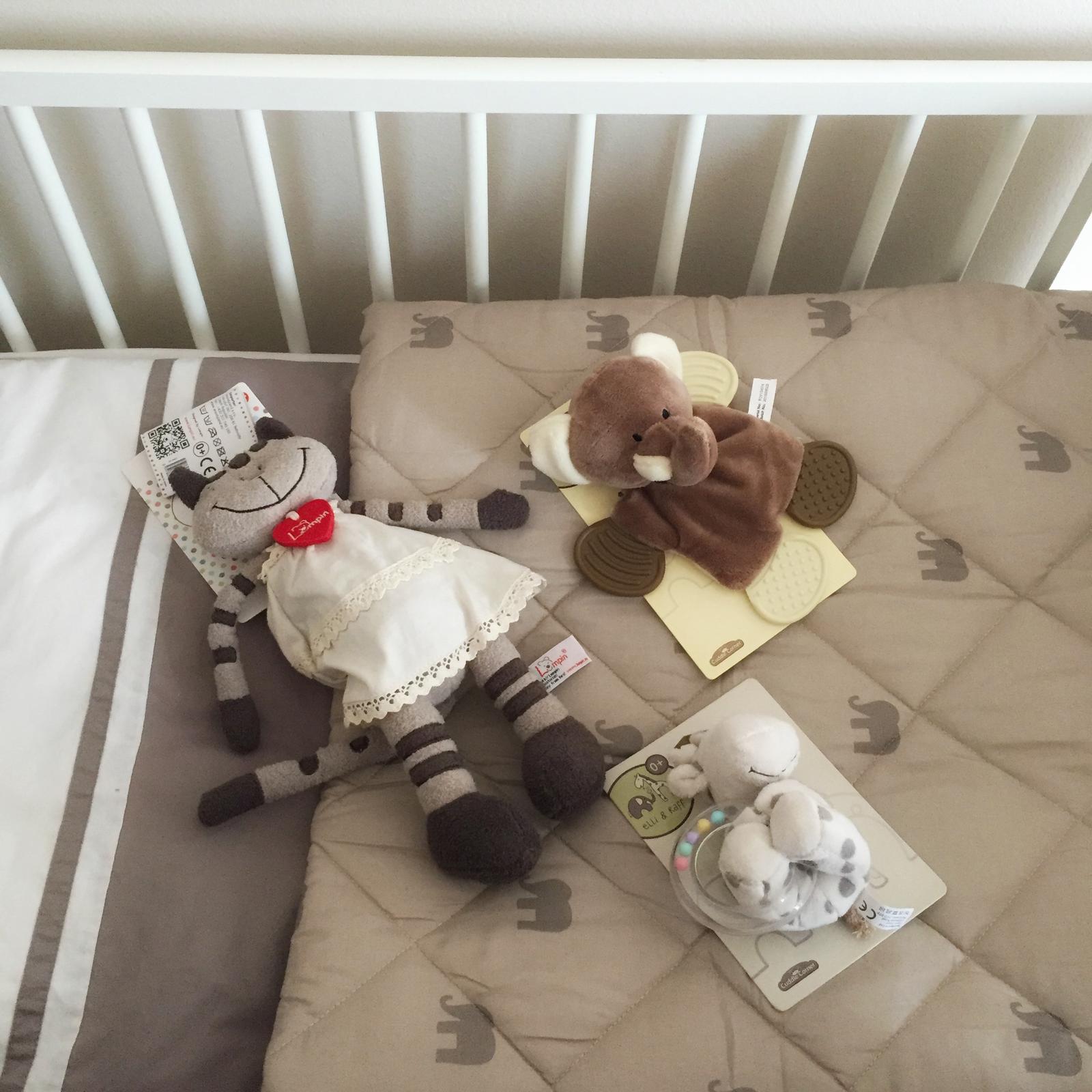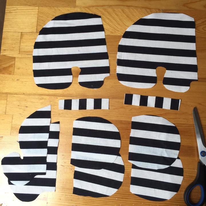 Našla jsem si předlohy na jednoduché plyšáky pro mimčo, mantinel do postýlky, polštářky…atd, atd. Navrhla jsem si tedy předlohy a pak vesele stříhala jednotlivé kousky látky.