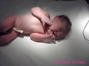 Tak už je ten nádherný pokládek mezi náma nejkrásnějších 5 měsíců. Je to naše zlatíčko, které přišlo na svět 29.8.2006 ve 3hod45min.Ikdyž porod neni jedna z nejkrásnějších věcí v životě, tak i přestu všechnu námahu kterou žena musí těch pár hodin protpět, tak určitě stojí za to vydržet......Když sem pak mohla držet ten malý uzlíček štěstí v náruči, tak to byl ten nejkrásnější a nejdojemnější zážitek v životě.