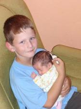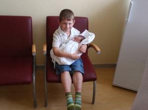 13.6.08 Poprvé svou malou sestřičku viděl Dominik, sice jen přes sklo ale moc se mu líbí...