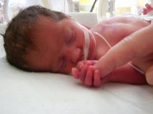 Velice nečekaně a o dva měsíce dřív se v neděli 8.6.2008 kolem 19. hodiny narodila v Pardubické porodnici naše Markétka. Měla 1490 gr a 41 cm. Prostě drobeček...