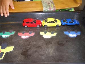 Aniž Fíka kdokoli cokoli učil, tak je to prostě v něm... auta a všechny vozidla, stroje, letadla.... tohle album je o jeho hraní s auty. Protože se zajímám o montessori, postupně jsem začala vyrábět pomůcky na poznávání barev, přiřazování, počítání... samozřejmě s auty 🙂