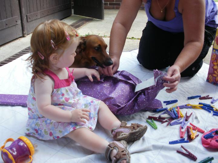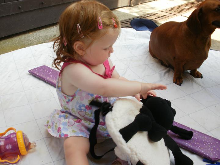 Anička leze a leze,že jí někdy ani nestačíme. Při procházkách chce jen sedět a pozorovat co se kde děje. Doma jsem musela z dosahu uklidit všechny kytky......začala mi je přesazovat. Přes den mě skoro nepotřebuje.....