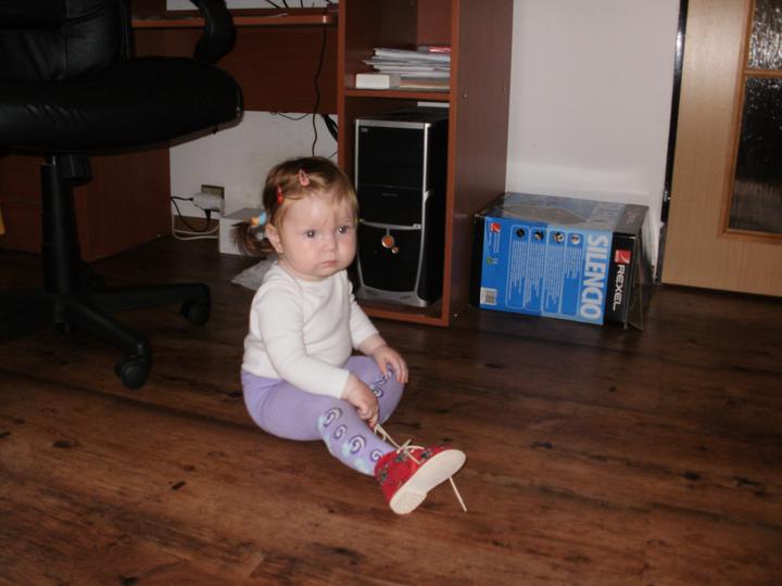 Anička chodí okolo nábytku a zkusila i chození za jednu ruku,tak uvidíme jestli se do roka pustí 🙂