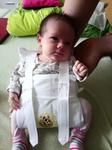 Rozhodně jsem to neflákala a malá to nosila poctivě pořád kromě koupání a přebalování a převozu v autosedačce, takže cca 23 hodin denně. Musela jsem změnit techniku kojení, ale vzhledem k tomu, že jsem kojila 6 hodin denně, nebylo možné jí to na kojení sundavat. Tím, že jsme to neflákali a nález nebyl tragický, to pomohlo a za 8 týdnů už jí mít nemusela.