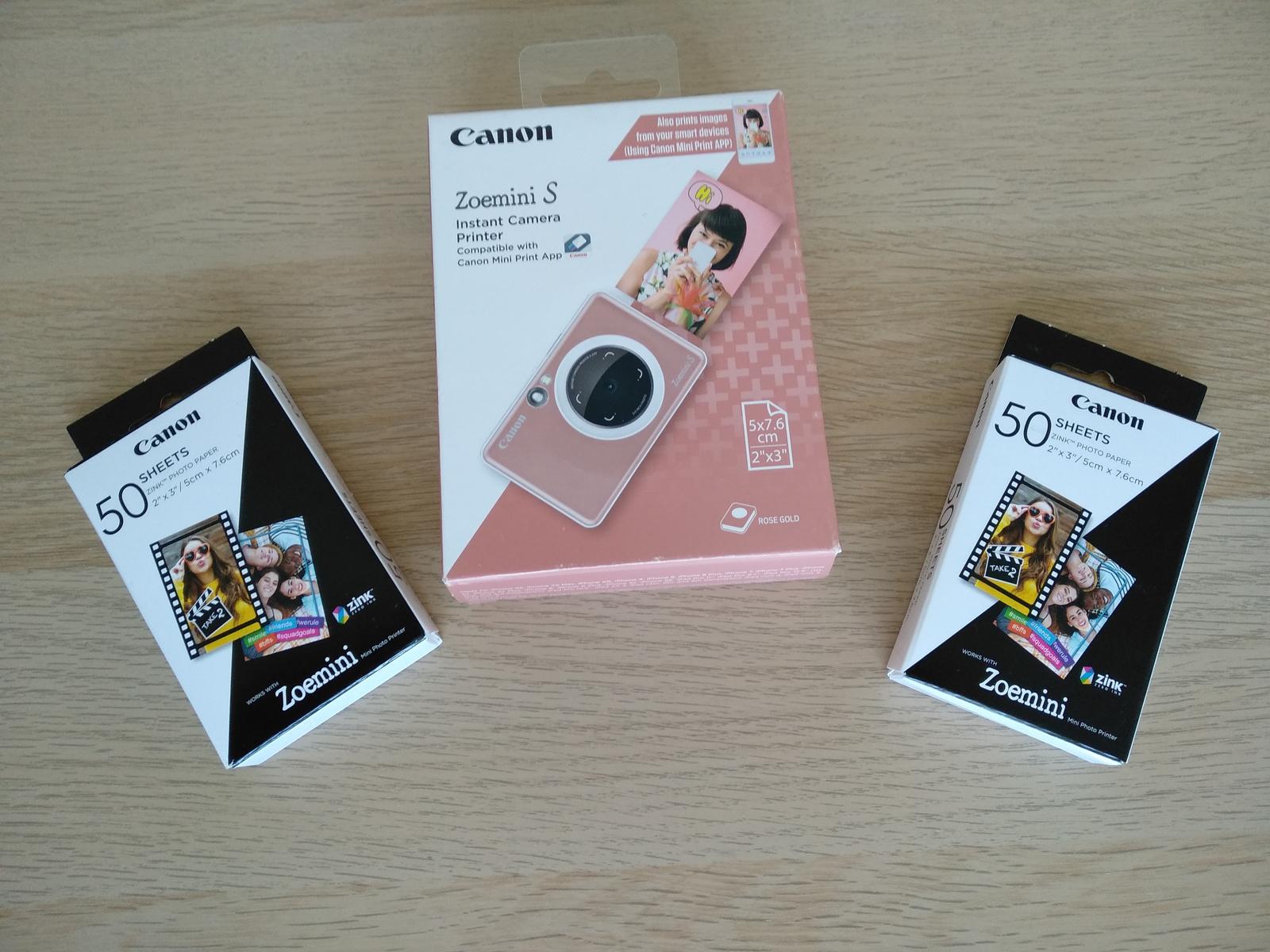 O týden později dorazil balíček. Netrpělivě jsem na něj čekala a hned rozbalila. V balíčku na mě čekalo překvapení v podobě samotného foťáku ve zlatorůžové barvě a dvou balíčků náhradních papírů (každý balíček má 50 ks). Papíry jsou skvělé v tom, že z druhé strany jsou samolepící. Na výrobu alb ideální 🙂 Fotečky jsou menší, než jak jsme zvyklí. Rozměr je 5 x 7,6 cm.