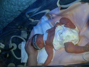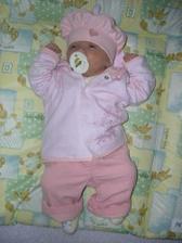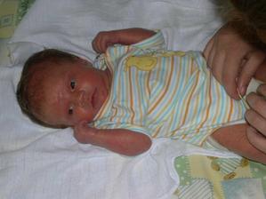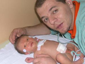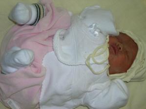 Tak už jsem konečně na světě. Jmenuju se Karolínka a narodila jsem se 19.května, tedy o měsíc před termínem. Při narození jsem měla 3,04kg a 51cm(takhle velká jsem byla díky těhotenské cukrovce). Po příchodu na svět kleštěma jsem si pobyla několik dní na JIP v inkubátoru a bojovala se žloutenkou, ale po 14dnech nás s mamkou konečně pustili domů. Všichni říkaj, že jsem celá táta a ten je na mě hrozně pyšnej. Byl u toho, když jsem se narodila a chodil za mnou na JIP, když maminka ještě nemohla. Teď už jsme ale všichni tři pohromadě, ty 3 krušné týdny v nemocnici jsou zapomenuty a užíváme si to...
