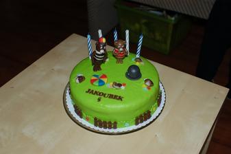 17/11/13 Kamarádka se vrátila do pracovního procesu, a protože Jakoubkovy narozeniny se kryjí s jejími, jejího syna a synovce, tak by náš dort už nezvládla. Využili jsme cukrárnu Amarilis ve Vysočanech. Až manžel najde fotku, dodám (Blesk - dort i manžel).