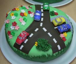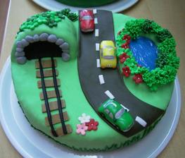 Dnes (20/11/2010) slaví narozeniny její syn (5 let) a jeho bratranec (3 roky). Poslala mi "náhledy". Zase se překonala, tak to sem dávám, myslím, že další komentář není třeba. Snad jen dvě poznámky: na poslední fotce není veledílo úplně dokončeno, oplatka bude samozřejmě také náležitě potažena a autíčka na dortech jsou svíčky:o)))
