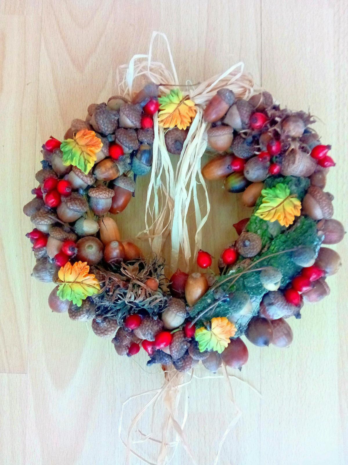 Ja som si dnes z nazbieraných darov jeseňe urobila veniec na dvere, ďalšia vec po ktorej som dlho túžila, aj v tom je čaro materskej dovolenky, človek tak nejak ,,hniezdi,,. No už sa teším ako takto o rok budú po lesnej cestičke cupitať o jedny nôžky viac, a ja jej všetko ukážem. Ukážem jej kde bývajú veveričky, a kam si nosia zásoby na zimu, kam odlietajú divoké husy nad nami, čo to šuští v lístí, ako a prečo sa farbia stromy do všetkých farieb sveta..... nazbierame gaštany a žalude, a doma si urobíme lipový čaj a pospájame to všetko zápalkami a vyrobíme si malú gaštanovú zoo.