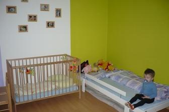 Samínkův a Danýskův provizorní pokojíček- chtělo by to nějaký obrázky na stěnu, ale jak říkám, je to provizorní, takže to necháme až bude novej nábytek