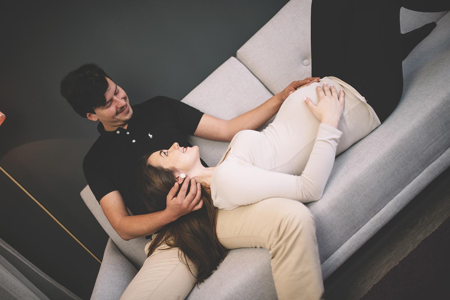 Těhotenské focení v boudoir ateliéru v Brně.