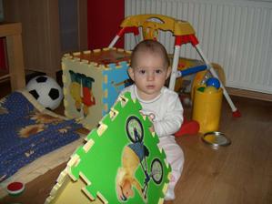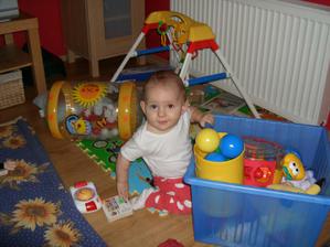 Už krasně leze po čtyřech, pořad si stoupa, pak se pustí a spadne, takže dostala první botičky,aby se jí líp chodilo. Ma šest zubu a pěkně kouše.Ukecana je až až , asi po tatovi, ale pořad jí nějak nerozumíme.Je to naše prdelka a moc ji milujem.
