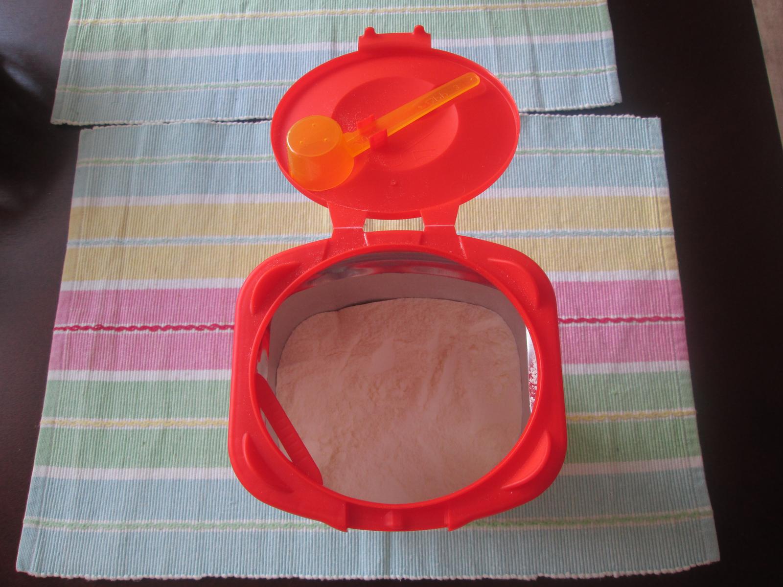 U Hami mlíčka se na "sáček" vůbec nemusí sahat a nijak s ním manipulovat, vlastně to ani nejde. Pouze se odtrhne vršek, takže nehrozí žádné rozsypání. Součástí obalu je plastový roh na zarovnání a do víčka se zacvakne odměrka. To je pro mě příjemná změna, odměrka se nám neválí na lince a při dělání mlíčka nemusím hledat nůž na zarovnání.