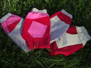 Krásná kolekce červeno-šedých tepláčků, které sluší klukům i holčičkám.