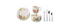 WMF 6dílná dětská sada nádobí Malý Princ je určená pro větší jedlíky, kteří už umí stolovat. Obsahuje totiž nejen nádobí z pravého porcelánu, ale také nerezový příbor. Celou sadu zdobí potisk Malého Prince.