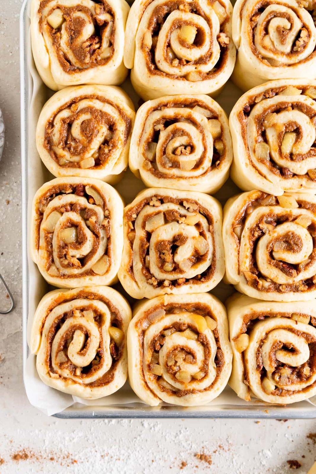 Připravte rolky podle kroku 5. Nenechte ale rolky kynout při pokojové teplotě. Rolky přikryjte fólií a dejte do lednice (přes noc). Až budete připraveni k pečení, vyjměte rolky z lednice 30 minut před pečením a pečte podle pokynů.