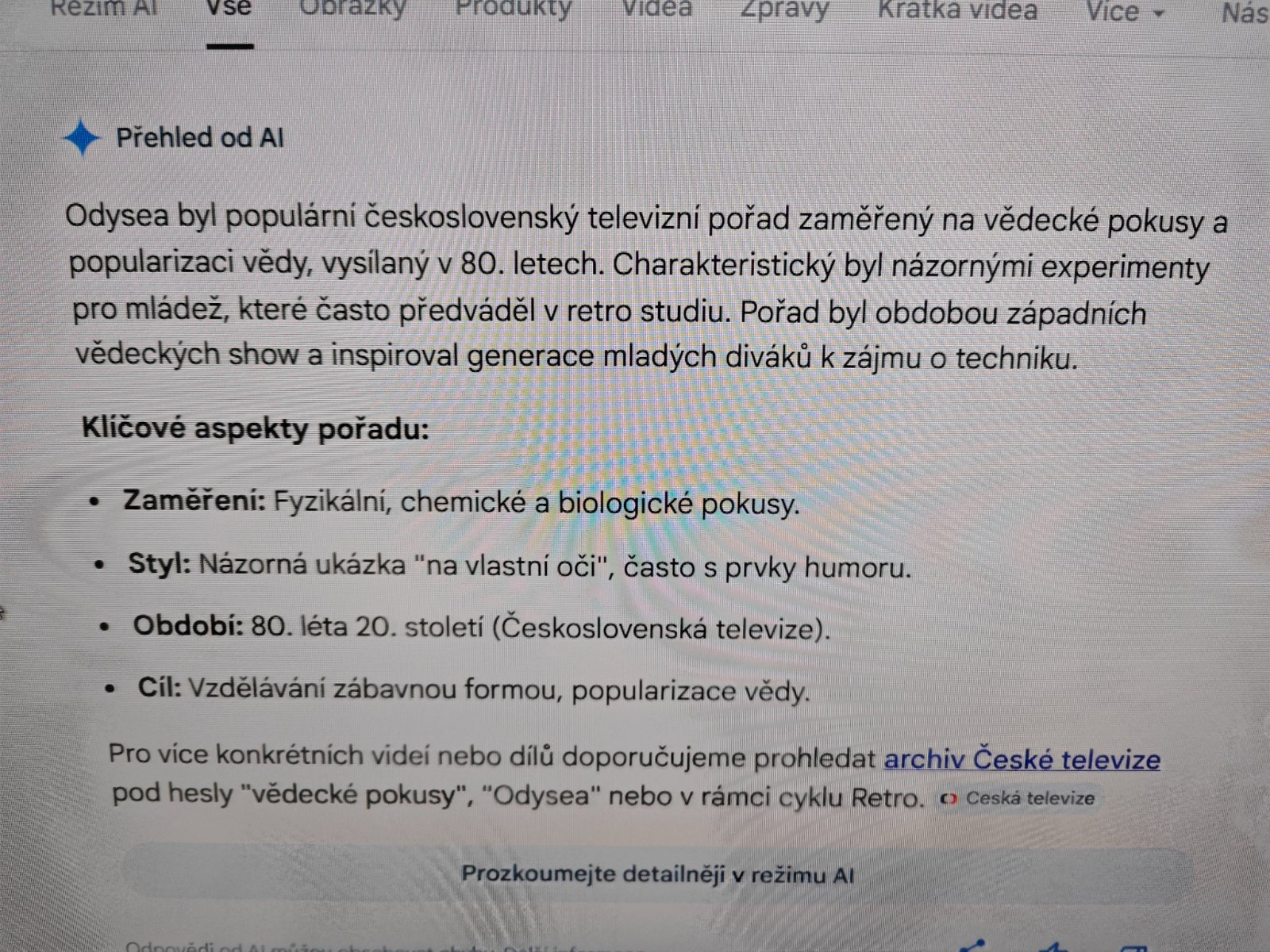 @hojda no, byly tam různé experimenty - nebo novinky z vědy a techniky. netuším jestli se to dá dohledat.