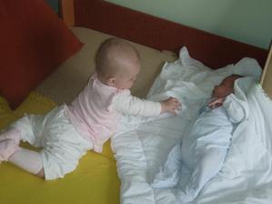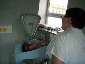 První poradna - měříme 5O cm, váha 3900 gDruhá poradna v 6ti týdnech - měříme 56 cm, váha 5090 g. Dnes kontrola kyčlí - v pořádku, další 2.9.09.
