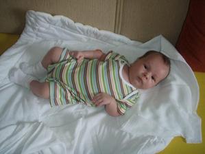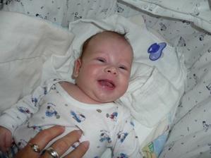 7.10. - 4 m. kontrola, váha 7250 🙂, délka 63 cm, obvod hlavičky 42 cm, očkování hexou a synflorixem.