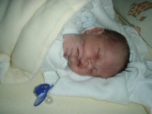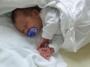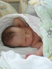 Narodil jsem se dne 2.6.2009 v 10:50 hodin, měřím 50 cm, vážím 3630 g. O sobě začal Vašíček dávat vědět týden před porodem, 26.5. se dostavili první poslíčci, bolesti byly co 5 minut, trvaly od 22:20 h. do 6 h. rána, proto jsem byla na druhý den 27.5. v porodnici na kontrolním monitoru. Podle monitoru už jsem měla kontrakce, po prohlídce dr. byl sice čípek zkrácený na 1cm, ale neotvírala jsem se. Podle dr. se vše však může kdykoliv změnit. Další bolesti přišly 1.6., trvaly od 3 h. do 7:30 h., opět začaly v 10:30 h. byly většinou po 5 minutách, někdy na chvíli polevily a zase zesílily, byly však už po celý den. Vydržela jsem to do 1:15 h. už dne 2.6., déle už jsem nemohla, probudila jsem Jirku a jeli jsme do porodnice. Po příjmu bylo provedeno vyšetření, otevřená jsem byla na 3 až 4 cm, byl mi natočen monitor, kontrakce pravidelné, PA prohlásila, že to pěkně začíná, podle ní to bude rychlé a bez epidurálu, byla píchnuta voda. Na hekárně jsem většinu času trávila ve sprše na balonu, na dalším vyšetření bylo zjištěno, že se neotvírám, otevřená stejně, natočen monitor, opět sprcha a stále dokola. Byl mi píchnutý epidurál, nezabral však, po 2 hodinách jsem žádala o další, bohužel zase žádná úleva. Takže zase sprcha, monitor, vydychávání kontrakcí, bolesti jsem měla křížové 😢. Asi kolem 9 h. jsme šli na porodní sál, otevřená jsem byla na 7 cm, to už jsem cítila, že se mi chce tlačit. Podle monitoru jsem měla nízké kontrakce, byl mi píchnutý oxytocin, bolesti, které už i tak byly šílené, začaly být ještě větší, s PA jsme začali tlačit, ale Vašík byl pořád moc vysoko, pořád jsem ho cítila pod žebry, nechtělo se mu ven, pořád nesestupoval, hlavičkou nenaléhal na branku, stále se tam nějak "kroutil", jak prohlásila několikrát PA, nešlo jej "chytit". Před 10 h. jsem se ptala PA jak dlouho to asi ještě bude trvat, odpověď jsem nedostala, bylo jasné, že to jen tak rychle nezvládneme. To už k nám na sál dorazila doktorka, vystřídala PA, opět jsme tlačili a snažili se Vašíka dostat dolů. Ani po několika dalších pokusech se nám to nedařilo, ještě mi byl přidán oxytocin na další zesílení kontrakcí. Na sál přišel další doktor, byl se tam podívat i primář, prohlásil, že pokud to ještě chvíli nepůjde, přejdeme k císařskému řezu. V tu chvíli jsem po tom císaři zatoužila, když jsem měla tlačit, tak jsem už nějak sílu neměla, Jirka mě začal povzbuzovat, že to zvládnu přirozeně. Když na mě přišla další kontrakce, PA mě začala povzbuzovat k tlačení, naštěstí prohlásila, že už vidí vlásky, takže jsem dostala další sílu k dalšímu tlačení, to už mi doktorka tlačila na břicho, po několika dalších kontrakcích se s ní vystřídal doktor, a doktorka mě začala rodit místo PA. Když už jsem cítila, že Vašík už půjde ven, snažila jsem se tlačit ze všech sil, před očima už jsem viděla bílé hvězdičky, pak jsem ucítila štípnutí, to mě nastřihli, dostala jsem další povel k tlačení, to už jsem cítila, že jde ven hlavička, tlačila jsem co jsem mohla, pak už jsem cítila, že jde tělíčko a pak obrovskou úlevu a už žádné bolesti (bylo 10:50 h.). Malého mi hned položili na břicho, podvázana byla pupeční šňůra, novopečený tatínek, který byl celou dobu se mnou u porodu, přestřihl pupeční šňůru. Porod placenty už byla procházka růžovým sadem, šití sice bolelo, ale bylo to nic podle bolestí při porodu, nevím, kolik stehů jsem měla, ale šita jsem byla kolem půl hodiny. Vašík byl zvážen (3630g), změřen (50 cm), očištěn a zabalen, předán tatínkovi na celou dobu, co jsem byla šita. První přiložení Vašíka k prsu proběhlo až zpátky na hekárně a moc se nám nedařilo. Po dalších 2 hodinách jsem byla převezena už na porodní oddělení na pokoj, se sestřičkou jsme zašli na wc a do sprchy, sama jsem nemohla. Na chvíli mi byl Vašík přivezen na pokoj, ale jen asi na půl hodinky, pak jej odvezli zpátky na novorozenecké, kde zůstal i přes noc, tuto nabídku jsem s úlevou přijala, jelikož jsem byla hodně unavená, nespala jsem vesměs 2 dny a rodila jsem s teplotou 38 °C, kterou jsem měla ještě i na druhý den. Druhý den po porodu od 6 h. rána jsem už měla Vašíka u sebe po celou dobu až do propuštění 5.6. domů.