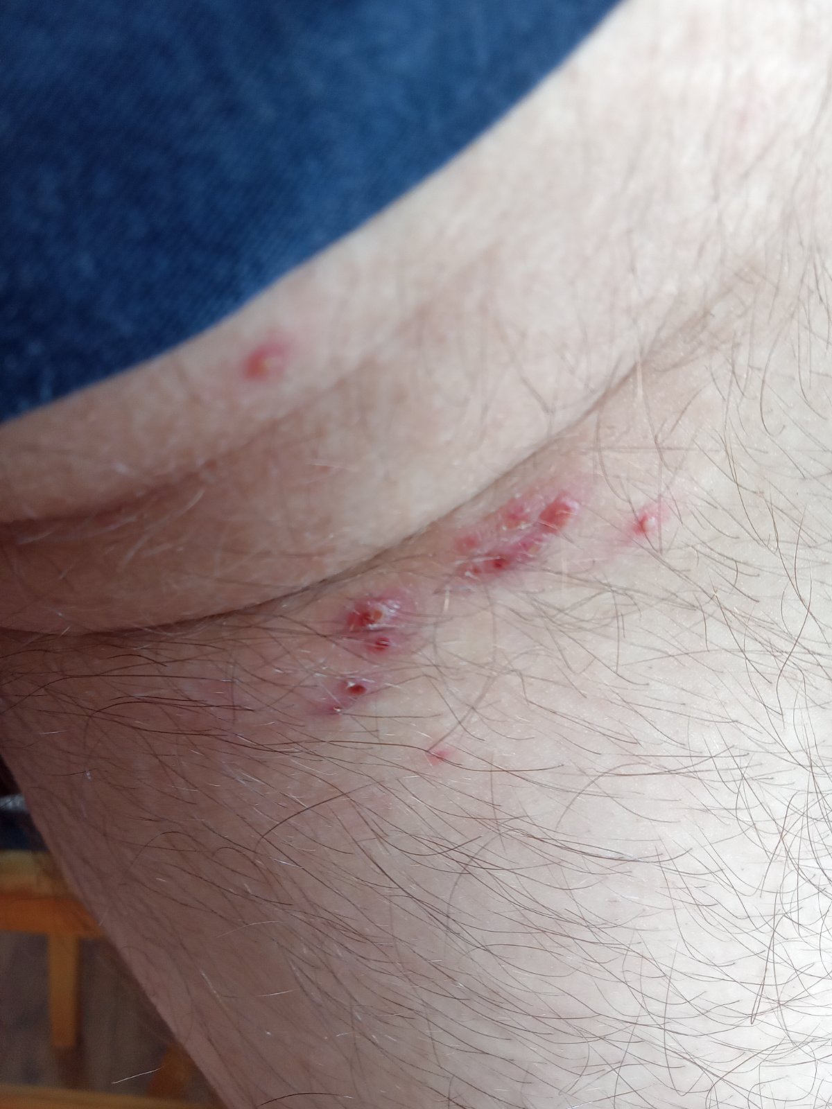 Možná molusky. Přenáší se to z bazénu. To si asi rozškrábal ne? To si pak roznese všude.