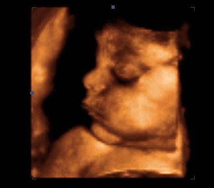Plod má již pěkně formované všechny části obličeje. Oddělení očních víček dokumentuje jasně patrný okraj horního víčka, které má také již dobře vyvinuté řasy.