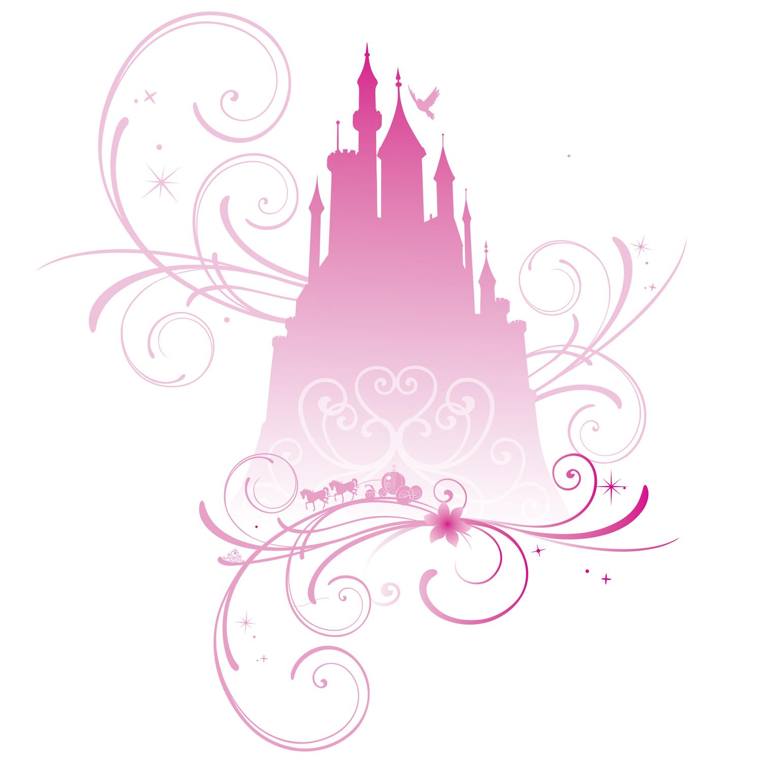 Dekorační nálepka Princess Disney s dekorem siluety Růžového zámku a s romantickými prvky je vytištěna na čirém podkladu. Nejlepších výsledků z výzdoby docílíme, pokud samolepku aplikujeme na světe vymalované stěny pokoje.