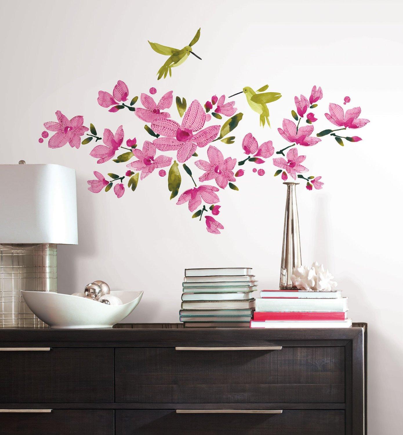 Samolepící obrázky květů magnólie a ptáčků kolibříků jsou vytištěny na průsvitném materiálu - samolepící folii, proto je vhodné tuto dekoraci aplikovat na bílé či světlé stěny pokoje. Takto lze dosáhnout nejlepších výsledků z výzdoby pokoje.