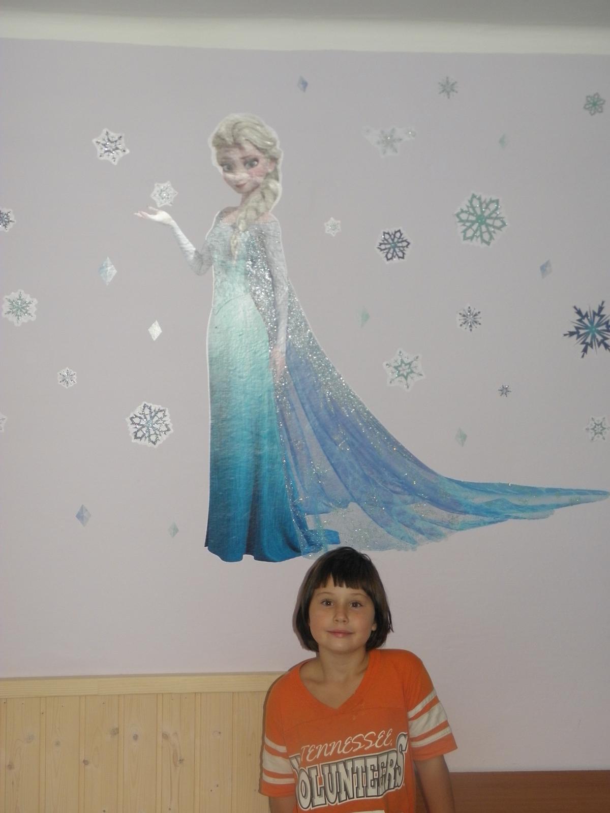 Samolepící obrázek Elsy na stěně dětského pokoje .