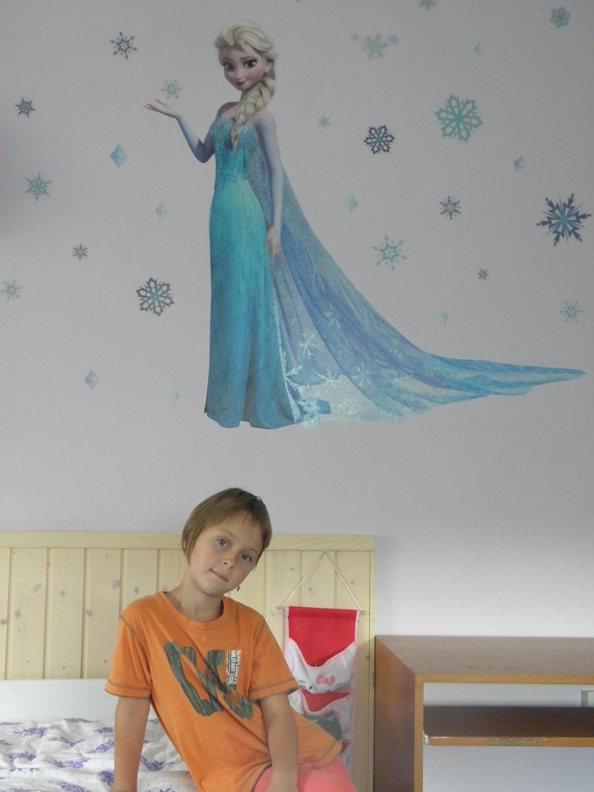 Samolepící obrázek Elsy na stěně dětského pokoje .
