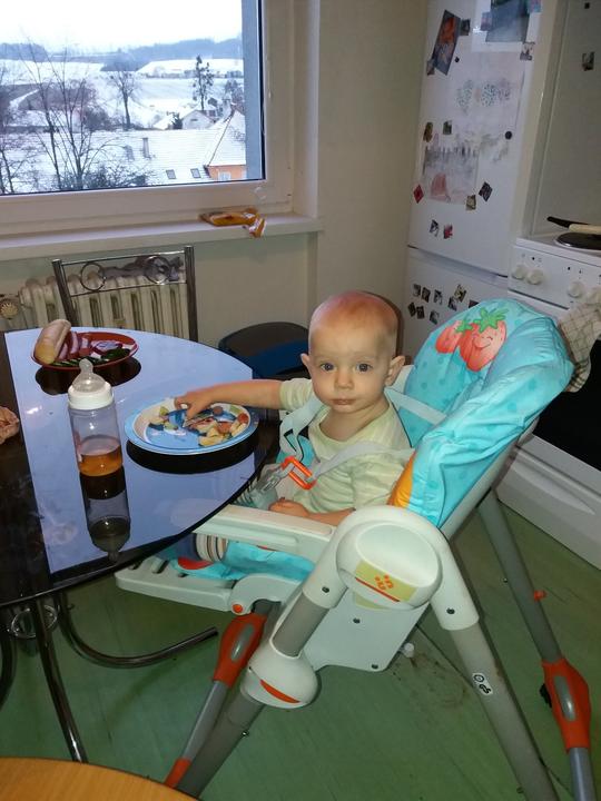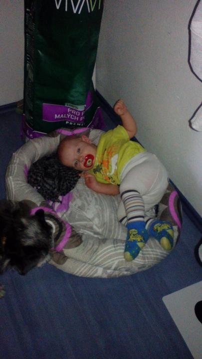 Vyspinkali jsme se a jdeme papkat dýničku 🙂a pak zase lítat po baráku po zemi :D MILUJU TOHO PRCKA :-*
