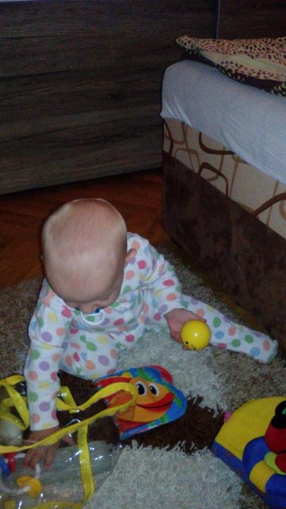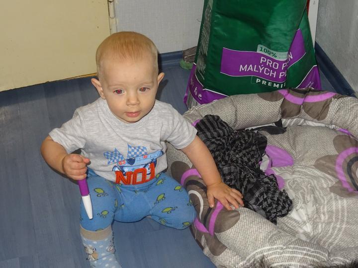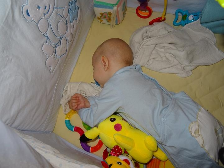 Tak Sebíka jsme nikdo nezastavil a postavil se nám v postýlce a snaží se stoupat i když leze. Asi nás "přečůral" 🙂